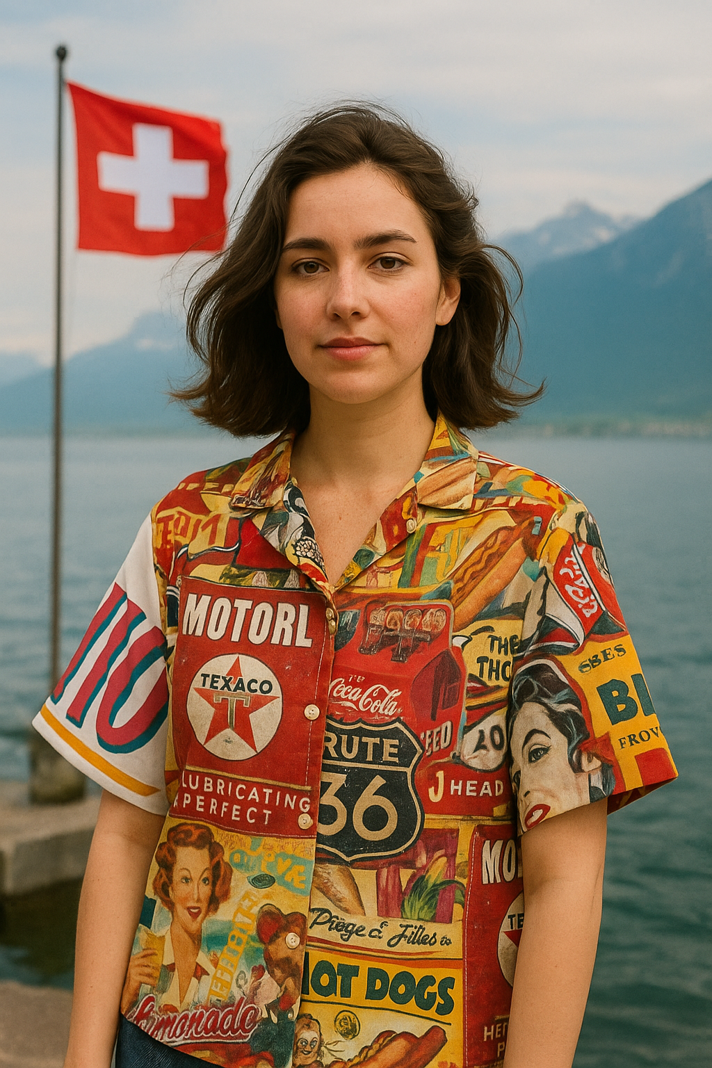 Esta camisa es un viaje directo a los años 50’ y 60’ 😎✨. Con un collage explosivo de anuncios vintage 🥤🌭⛽ y colores vibrantes 🎆, es la pieza perfecta para quien quiere destacar y marcar estilo.